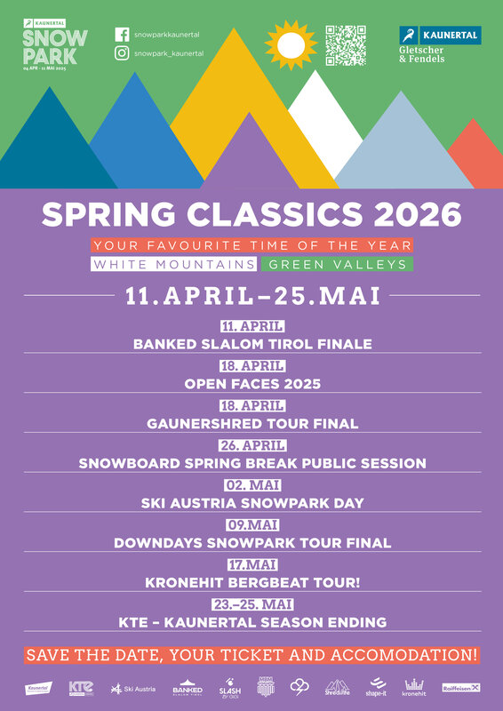 Die Spring Classics sind zurück - und weil's so schön ist, wird die Übergangszeit dieses Jahr sogar um eine Woche verlängert. 5 Wochen voller Action, legendärer Parklaps, Freestyle-Events und chilliger Sessions für alle, die den Frühling im Schnee feiern wollen. Und am Ende wird mit dem KTE ein entsprechendes Season Ending Wochenende gefeiert.