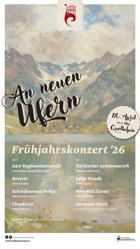 The Kaunertal Brass Band invites you to its traditional spring concert on Saturday, April 18, 2026. This musical evening at the Kaunertal Hall (Quellalpin Kaunertal) celebrates the brass band tradition and sense of community for which the band has been known for decades. The varied program ranges from classical brass band pieces to entertaining melodies that will delight both locals and visitors alike. Deeply rooted in community life, the band presents this spring concert as a festive kickoff to the new concert season and invites all music lovers to come and enjoy the performance.